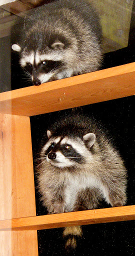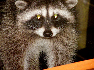 There's a bookcase outside the picture window in my shop that I put up so that the cats can climb up to the window. Two raccoons are on it as I write this, staring in the window at me, as if looking soulful would get them invited in for catfood.