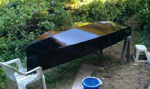 Well, I've got black paint on the outside of the boat now, so she's nice and shiny and the shape is easy to appreciate.